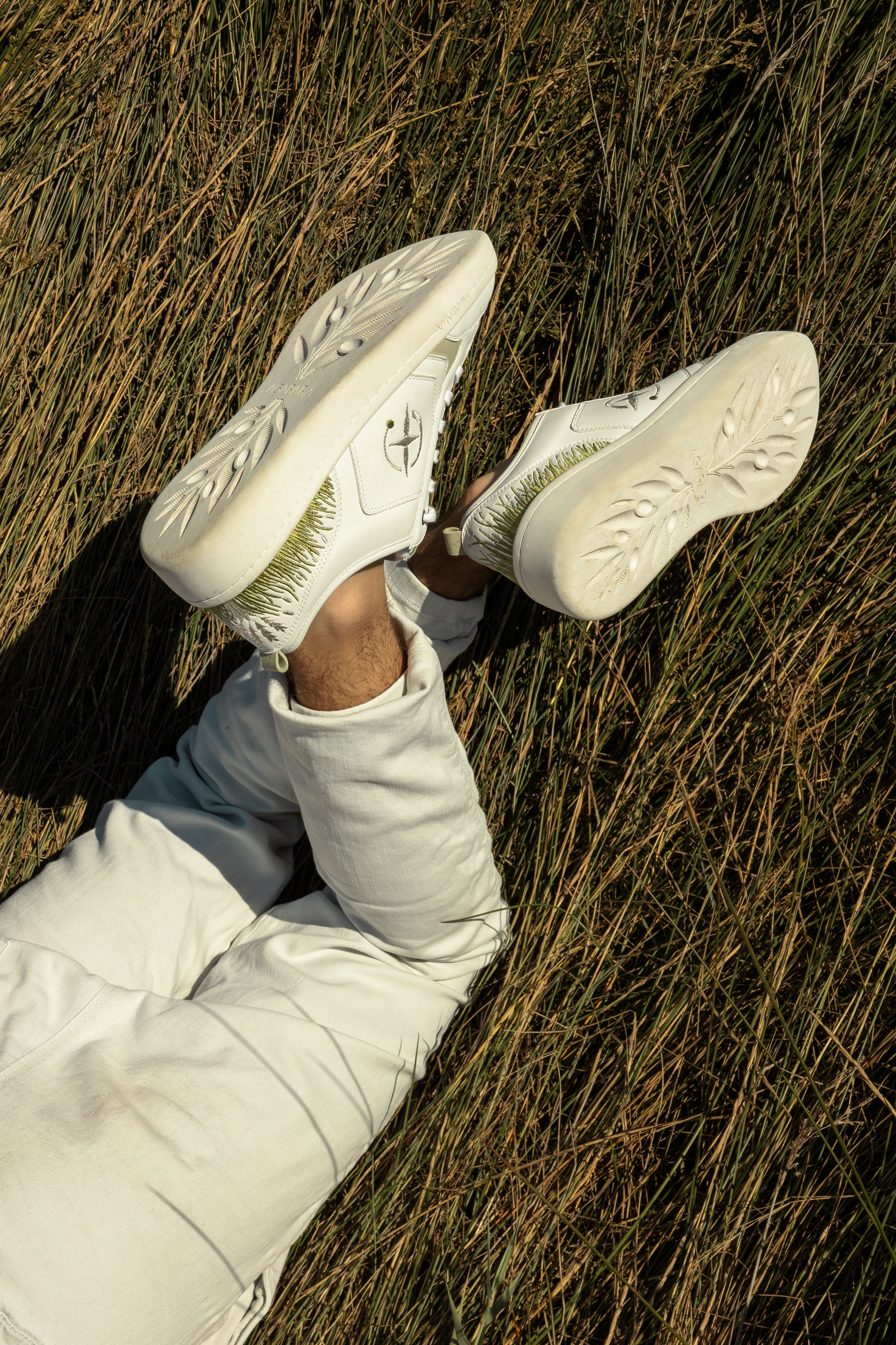 Sneaker artisanale née des plaines sauvages de Camargue. Tissée avec 28 329 points de broderie, elle soutient la préservation des tortues marines Caouanne du Delta du Rhône.